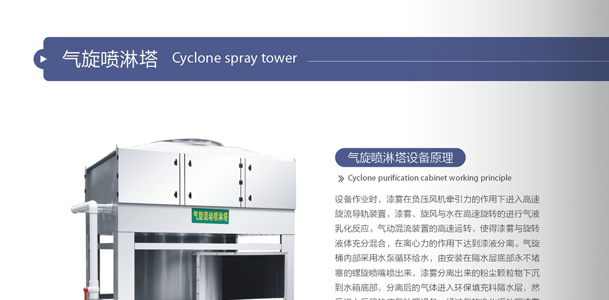 簡(jiǎn)介:備作業(yè)時(shí),漆霧在負(fù)壓風(fēng)機(jī)牽引力的作用下進(jìn)入高速旋流導(dǎo)軌裝置,漆霧、旋風(fēng)與水在高速旋轉(zhuǎn)的進(jìn)行氣液乳化反應(yīng)。氣動(dòng)混流裝置的高速運(yùn)轉(zhuǎn),使得漆霧與旋轉(zhuǎn)液體充分混合,在離心力的作用下達(dá)到漆液分離。氣旋桶內(nèi)部采用水泵循環(huán)給水,由安裝在隔水層底部永不堵塞的螺旋噴嘴噴出來(lái),漆霧分離出來(lái)的粉塵顆粒物下沉到水箱底部,分離后的氣體進(jìn)入環(huán)保填充料隔水層,然后進(jìn)入后段的廢氣處理設(shè)備。經(jīng)過(guò)氣旋凈化柜處理漆霧凈化率可達(dá)95%以上。