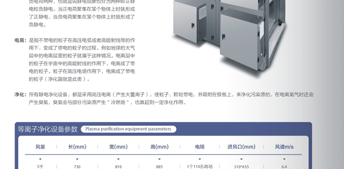 簡(jiǎn)介:所有靜電凈化設(shè)備,都是采用高壓電離(產(chǎn)生大量離子) ,使粒子,顆粒帶電,并吸附在極板上,來(lái)凈化污染源的,在電離氧氣時(shí)還會(huì)產(chǎn)生臭氧,臭氧會(huì)與部分污染源產(chǎn)生"冷燃燒",也真起到- -定凈化作用。